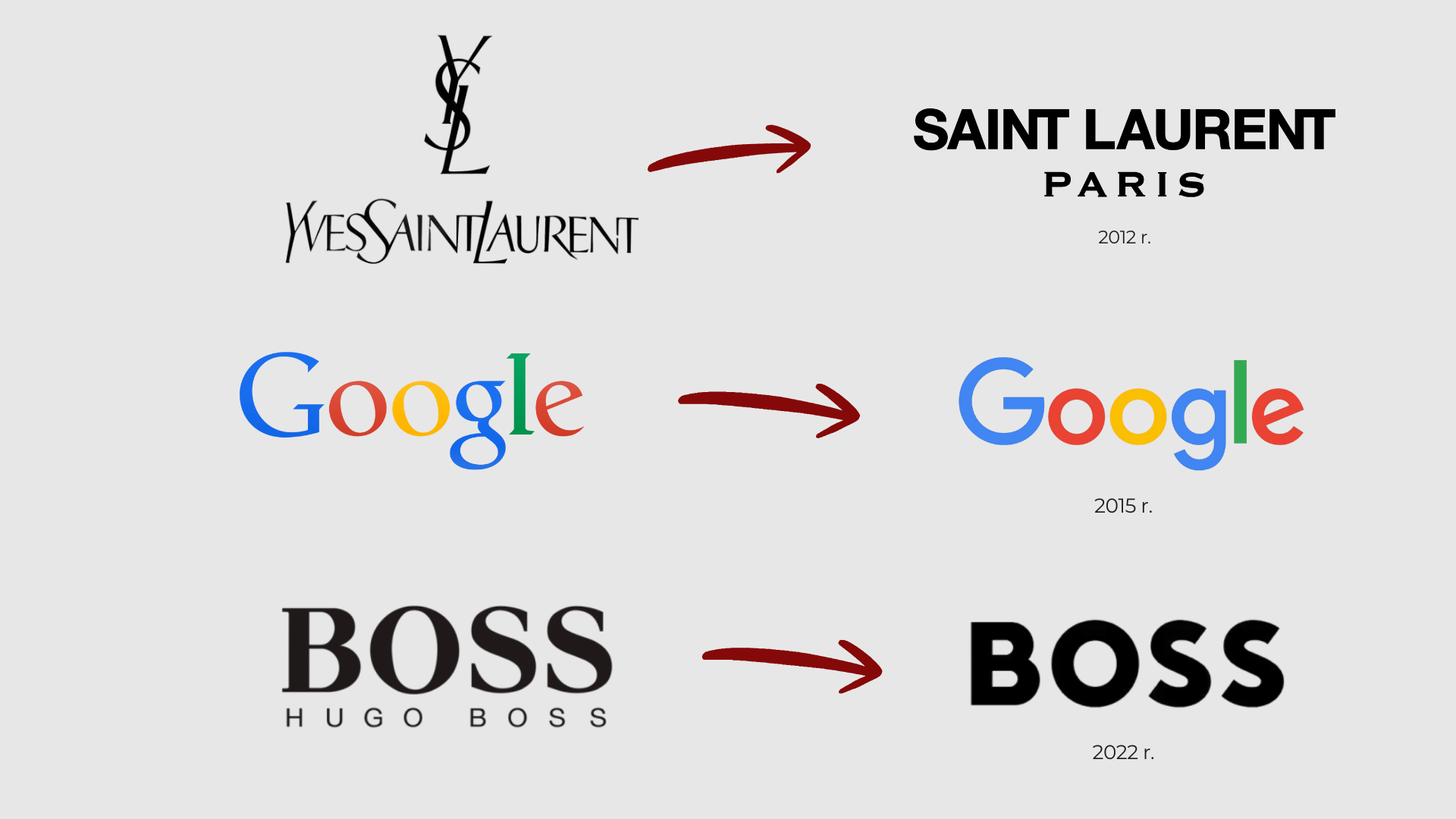 Ostatnie lata szczególnie pokazują nam, jak globalne marki odchodzą od rozbudowanych, dekoracyjnych logotypów na rzecz prostych, masywnych bezszeryfów. Dobrze obrazują to przemiany w identyfikacjach wizualnych marek modowych i technologicznych, które bardzo szybko odnalazły się w nowych wymaganiach rynku. Saint Laurent porzucił charakterystyczne, delikatnie ornamentalne liternictwo i zastąpił je wyrazistą, geometryczną typografią, która lepiej współgra z nowoczesnym i stawiającym na minimalizm światem mody. Podobną drogą poszedł Google. Jego zmiana nie tylko porządkowała identyfikację, ale przede wszystkim poprawiła czytelność w setkach cyfrowych formatów, od ikon aplikacji po interfejsy systemów. Z kolei BOSS postawił na pogrubienie liter i rezygnację z klasycznych szeryfów, dzięki czemu zyskał wizerunek bardziej współczesny, dynamiczny i odporny na skalowanie w środowisku online. Wspólnym mianownikiem tych zmian jest dążenie do maksymalnej przejrzystości i elastyczności, czyli cech kluczowych w czasach, gdy logo funkcjonuje przede wszystkim na ekranach.